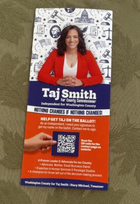 To me, being a leader isn’t about having the loudest voice; it’s about making sure everyone else feels seen, heard, and valued. These are the Prime Time for Women values I carry in my work and personal life. I want to bring that same empathy and advocacy to the Commissioners’ office. I want to look at a budget and ask; How does this affect the seniors living on a fixed income? How does this support the grandmother raising her grandchildren? Or how does this affect a single, working mom? I am running as an Unaffiliated candidate because I believe local issues shouldn’t be partisan. I want to represent people, not a political party. I must earn my way onto the ballot through a petition process. Unlike the major party candidates, I need signatures from registered voters just to ensure my name is printed on your ballot this November. On my website, www.washco4tajsmith.com, I talk about my platform; things like improving transportation, healthcare access, and creating a more connected Washington County. But beyond the policies, I’m running because “Nothing Changes if Nothing Changes.”